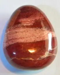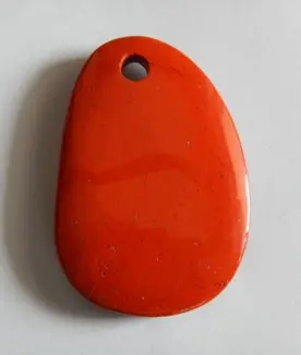 Dieser tropfenförmige Granat Trommelstein hat ein gebohrtes Loch.