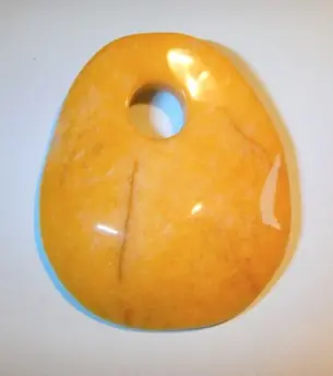 Dieser tropfenförmige China Jade oder Neue Jade Trommelstein hat ein gebohrtes Loch. Es handelst sich dabei um eine Handelsbezeichnung für diesen grünen Edelserpentin. Durch die Bohrung lässt er sich angenehm an einer Kette, aber auch an einem Lederband tragen. Größe des Schmuckstücks ist ca. 2 - 3 cm, Lochdruchmesser ca. 3 mm Herkunft Rohstein China.