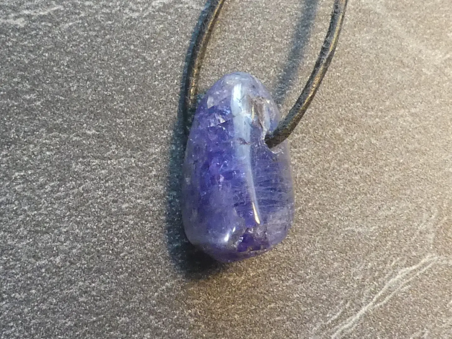 Kleiner Blauquarz Tropfenanhänger für Lederband geeignet