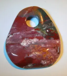Dieser tropfenförmige Rhyolith Schmuckanhänger wurde mit einem Loch zB für ein Lederband gebohrt. Als Anhänger am Lederband oder Kette geeignet. Größe ca. 2 - 3 cm, Lochdurchmesser ca. 3 mm Herkunft Rohstein: Australien