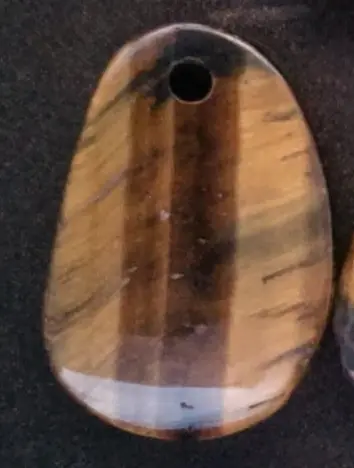 Diese besondere Mischung aus Tigerauge/Falkenauge hat ein gebohrtes Loch. Als Anhänger am Lederband oder an einer Kette geeignet. Herkunft Rohstein Südafrika. Größe ca. 2,5 - 3 cm, Lochdruchmesser ca. 3 mm