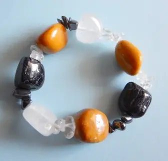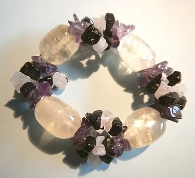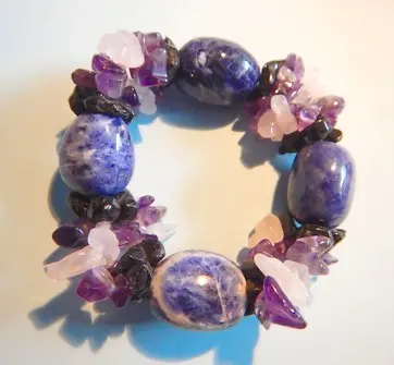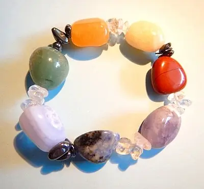 mit Carneol, Citrin, Peridot, Bergkristall, Amethyst, Sodalith, Aquamarin