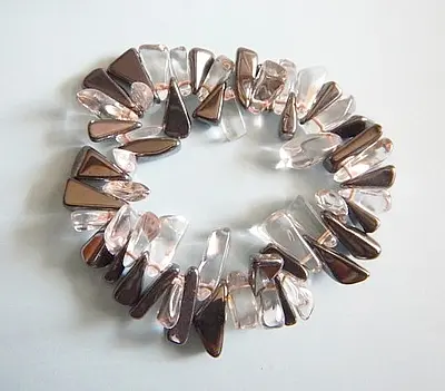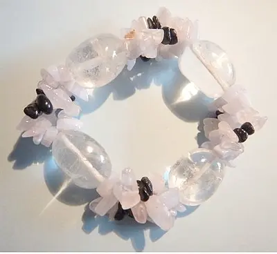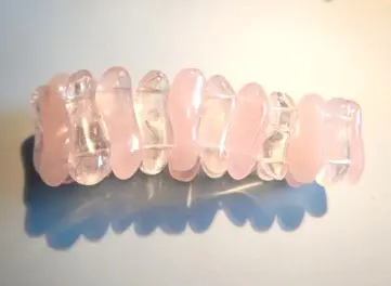 Die schönen rosa farbenen Kugeln wurden auf einem elastischen Gummi aufgefädelt.