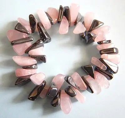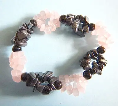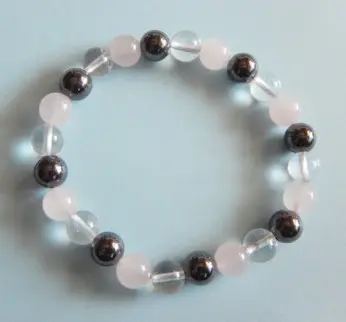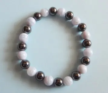 Aus schönem Rosenquarz gefertigte Power-Armbänder mit Kugeln (je 8 mm).