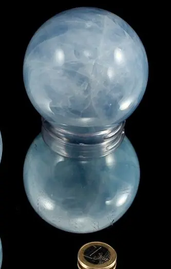 Diese schönen, hellblauen Edelsteinkugeln wurden aus Calcit geschliffen.