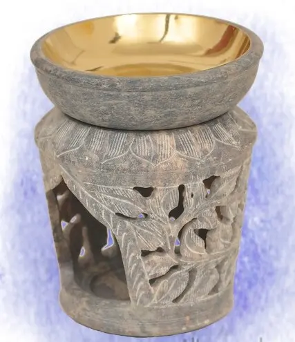 Hinweis: Da Speckstein ein Naturprodukt ist kann es zu Farbabweichungen kommen. Mit Messingeinlage in der Schale.