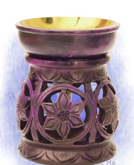 Duftlampe-Aromalampe im neuem, modernem Design mit von Hand gearbeiten Blüten verziert. Die Duftschale mit Messingeinsatz (Höhe ca. 2,8cm) ist abnehmbar.In die Schale der Duftlampe passen ca.65ml Flüssigkeit. Maß bis zum oberen Rand der Schale gemessen.