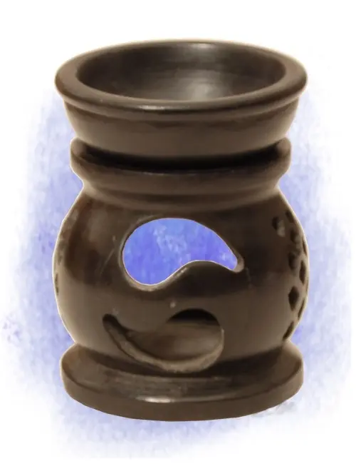 Duftlampen mit dem Symbol Yin Yang aus Speckstein gearbeitet. Die Duftschale (Höhe ca. 2,5 cm) ist abnehmbar. Höhe: 8 cm Durchmesser: 6 cm Material: Speckstein Farbe: schwarz