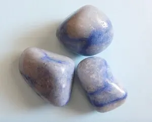 Blauquarz wird dem Stirn- und Kehlchakra zugeordnet.