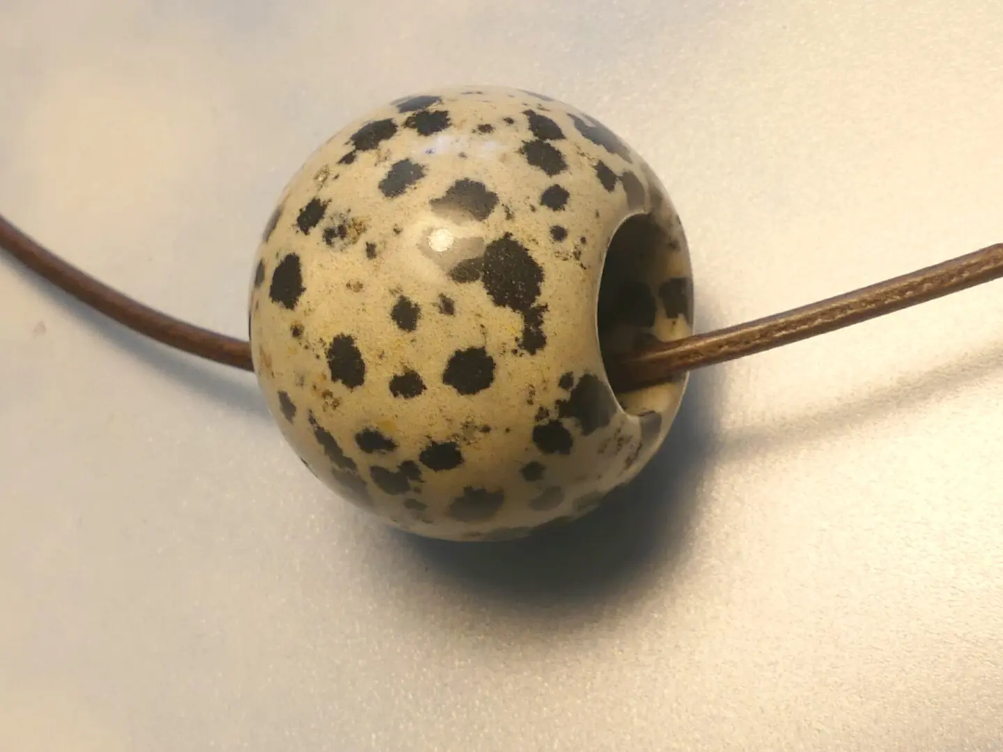 ca. 1 x 1,5 cm inkl. Lederband. Dalmatinerjaspis stärkt Lust am Lernen und Wissensdrang