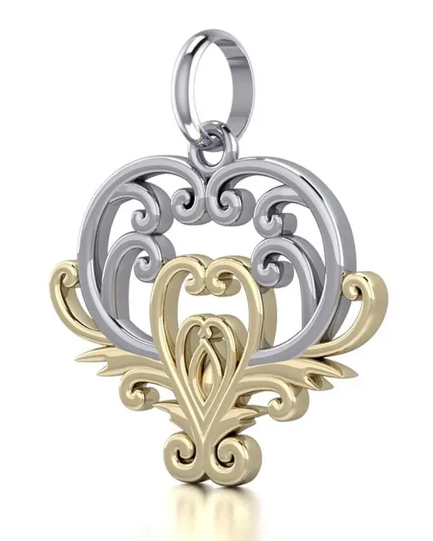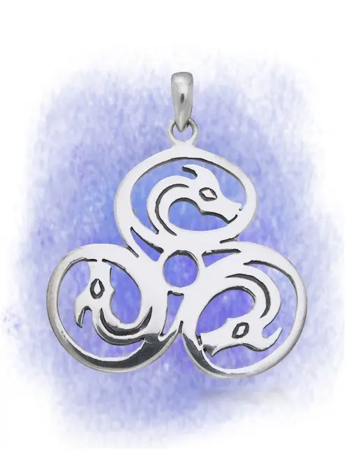 Das Triskel ist ein altes Symbol der Kelten und drückt eine große innere Stärke aus. In diesem schönen Anhänger verstärkt sich dieser Effekt durch die eingearbeiteten Drachen, die sich in diesem Rad der Schöpfung mit drehen. Die Drachen stehen dabei für eine schützende Kraft, die diesen Talisman zu einem besonderen Stück macht. Als Anhänger getragen stärkt er das innere Selbstbewusstsein und fördert so die Tatkraft des Trägers.