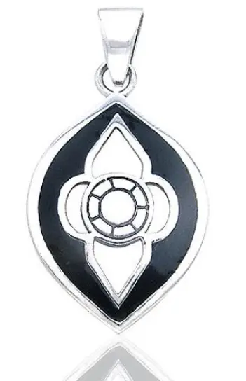 Als Talisman schützt dieser Anhänger den Träger gegen Feinde und Fehlschläge. Auch soll er die innere Stärke und die Willenskraft stärken. Höhe: 31 mm Breite: 28 mm Nettogewicht: 4 g