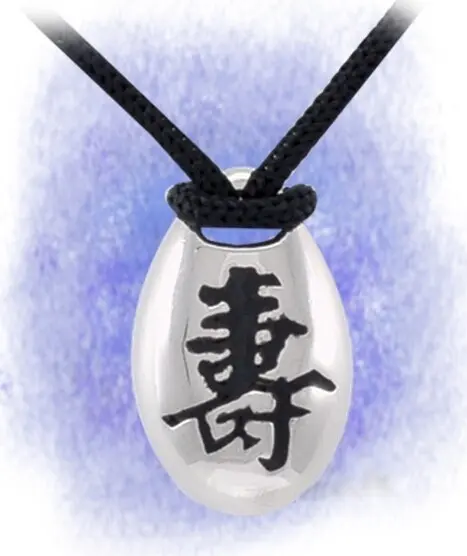 Anhänger aus 925er Steringsilber an verstellbarer Kordel mit dem chinesischen Zeichen Shou für Langes Leben. Länge: 20 mm Breite: 13 mm Nettogewicht: 2 g