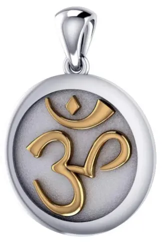 Om-Meditationsanhänger aus Silber und Gold TPV1229 Jedes Mal, wenn wir uns gut fühlen, finden wir eine Schwingungsausrichtung auf das, was wir wirklich sind. Wir kontemplieren und meditieren spirituell. Die Meditationen basieren auf einem Mantra, das im Sanskrit einen Klang symbolisiert – ein Om. Om ist hinduistischen Ursprungs...