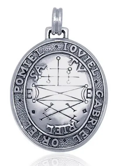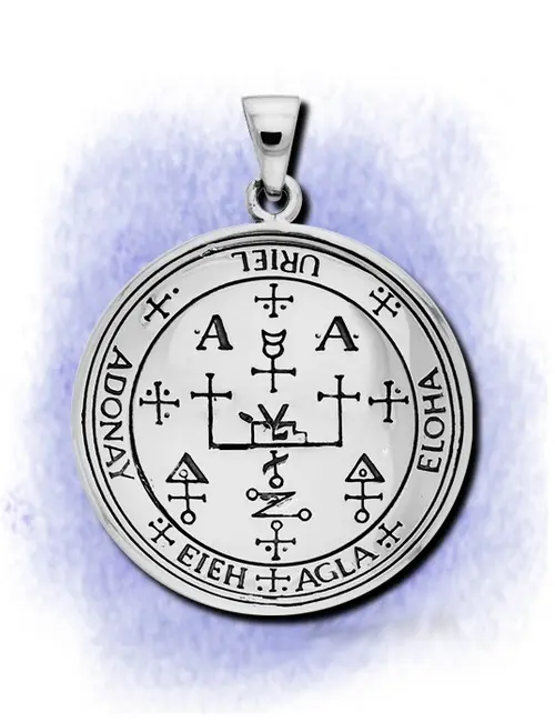 Sein Name bedeutet soviel wie das Licht Gottes. In dieser Sigille steht die Bedeutung des Erzengels Uriel, dessen Licht auf die Menschen scheint und ihre Wege erleuchtet. Als Talisman getragen kann er Zorn und Hass bekämpfen, die im Menschen aufkommen können. Der Anhänger kann außerdem gegen Ungeduld helfen, die vor allem in der heutigen Zeit immer häufiger auftritt. Hinweis: Der Anhänger ist leicht nach außen gewölbt. Durchmesser: 30 mm
