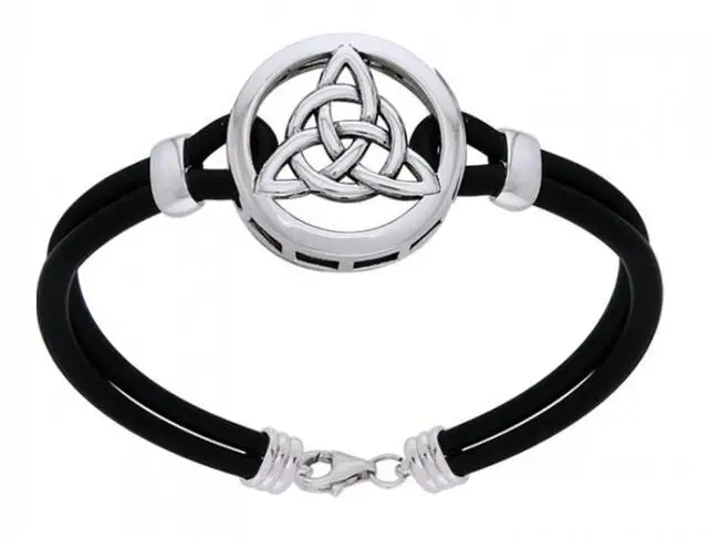Armband: Charmed mit Lederband 20cm aus 925-Silber und Leder Das verflochtene Symbolzeichen Triquetra (ø 2,2cm) oder auch Charmed Knoten genannt hier an dicken schwarzen Lederbändern als Armband. Durchmesser Charmed Zeichen: 2,2 cm