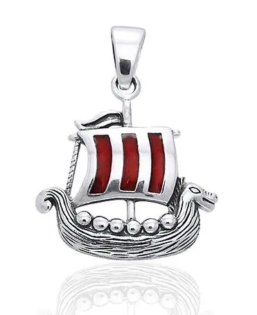 Wikinger Boot aufwendig gearbeitet, emaliert. einseitig. Länge: 29 mm Breite: 23 mm Nettogewicht: 3 g Material: 925-Silber Qualität: Feinste Marken Qual. Nachbearbeitung: handpoliert Oberfläche: emailiert