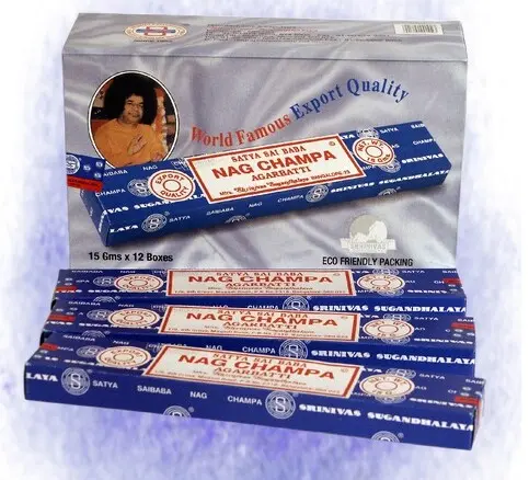 15 gr. Nag Champa sind die beliebtesten und bekanntesten Räucherstäbchen aus Indien. Es gibt viele Menschen, die den Duft von Nag Champa genießen, ja schon fast "süchtig" danach sind. Länge: 24 cm, Marke: Satya, Indisches Räucherstäbchen, Naturprodukt in Handarbeit Herkunft: Indien